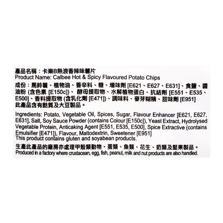 CALBEE Potato Chips Hot & Spicy 55g【卡樂B】熱浪香辣味薯片 55g