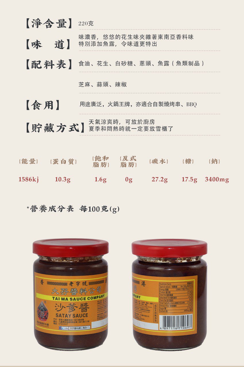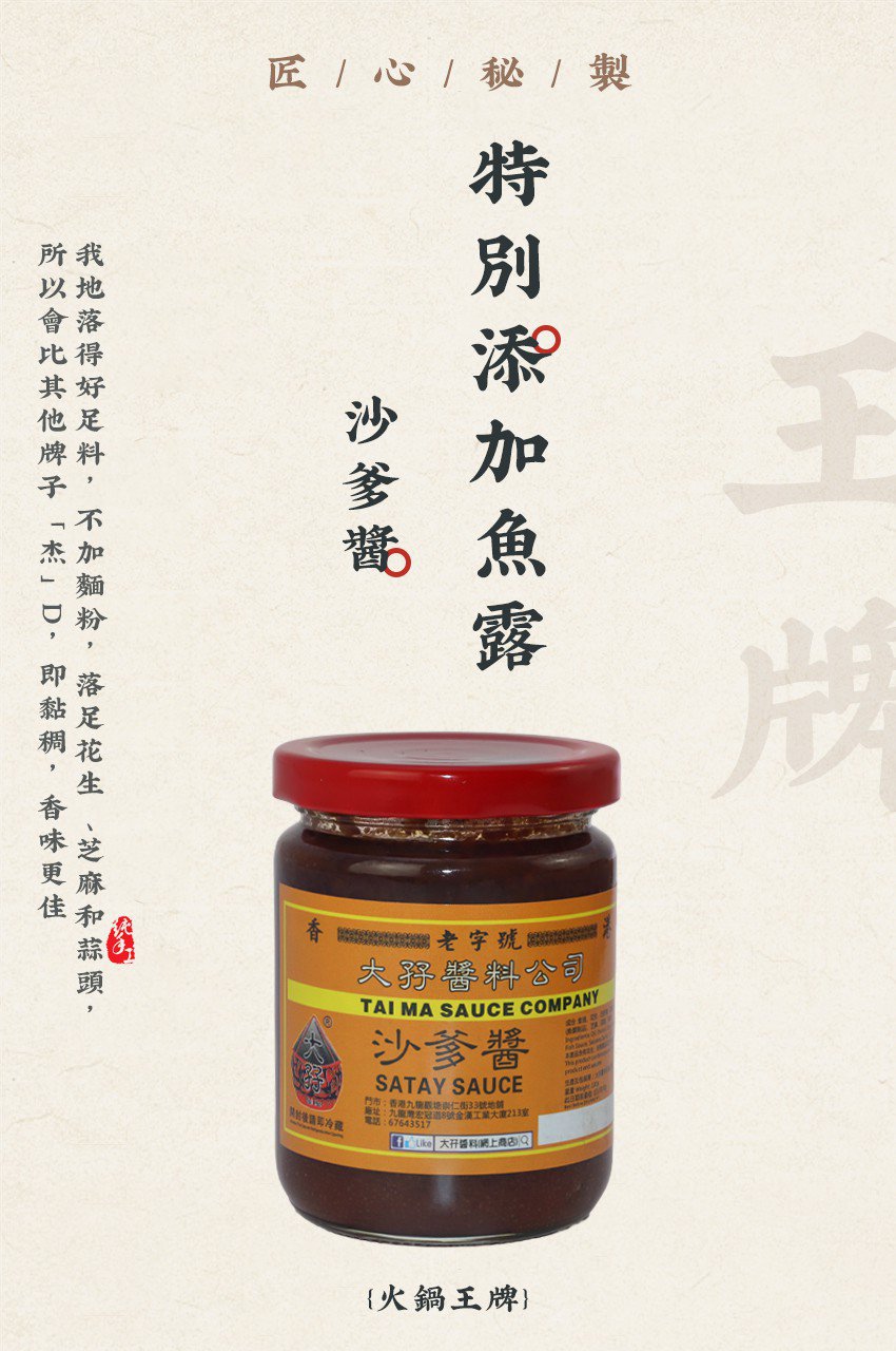TAI MA Satay Sauce 220g【大孖醬園】沙爹醬 220克